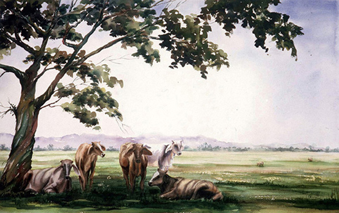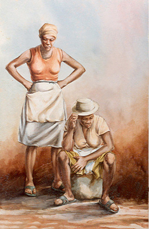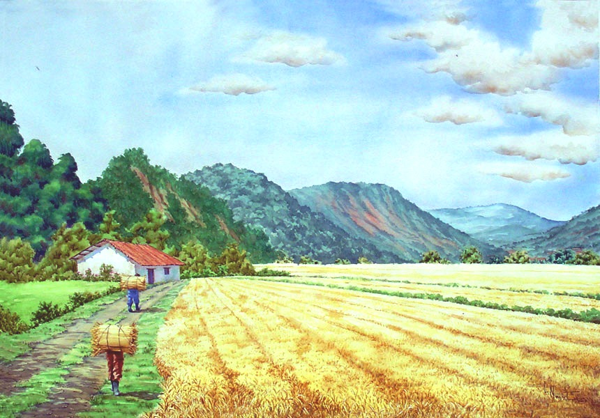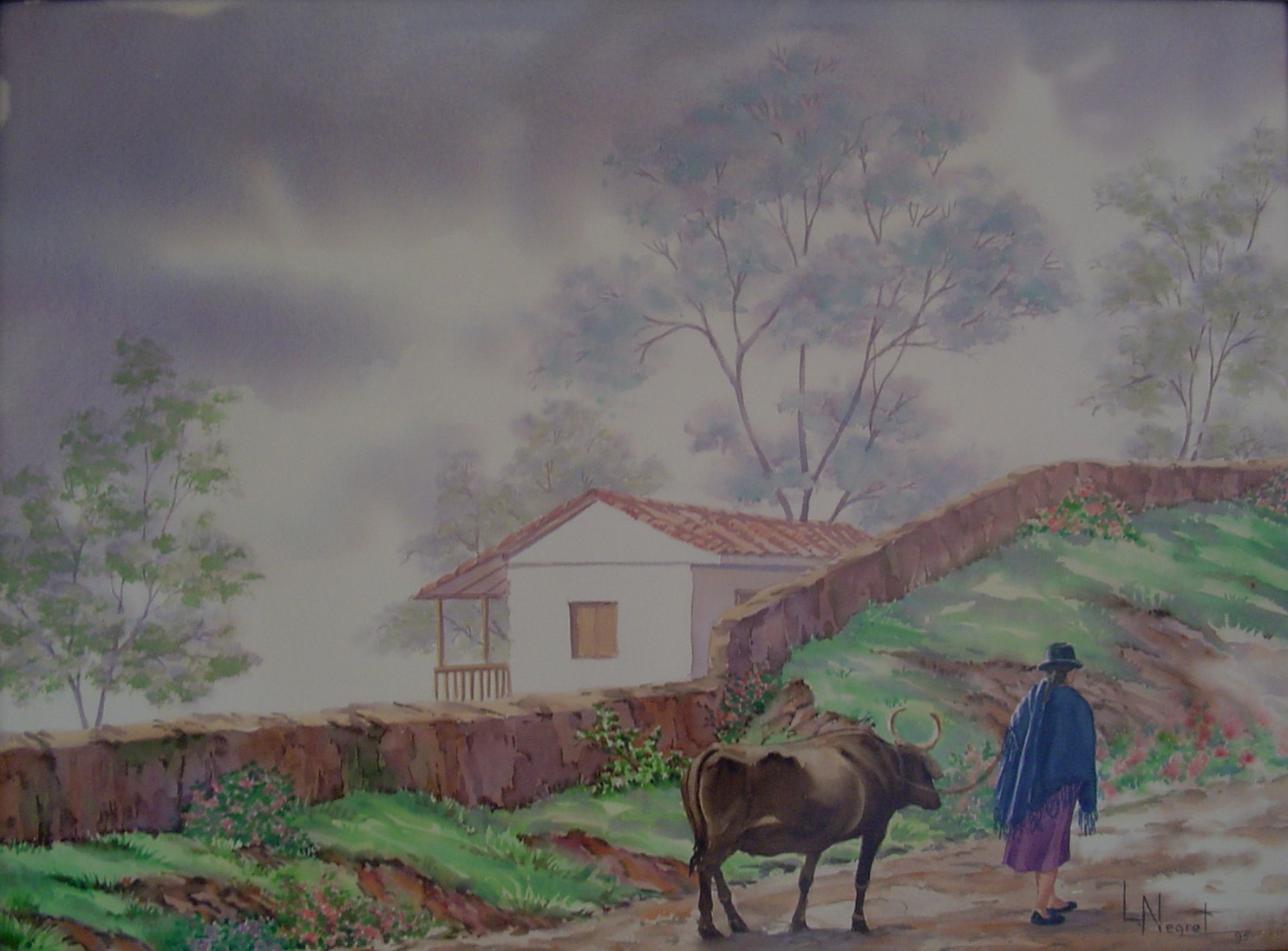 Con mis temas en acuarela paisajes y personajes de nuestra tierra colombiana trabajados en esta dificil técnica, podemos recordar a los antiguos maestros debido a mis métodos de trabajo.