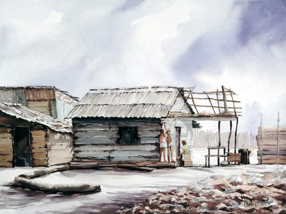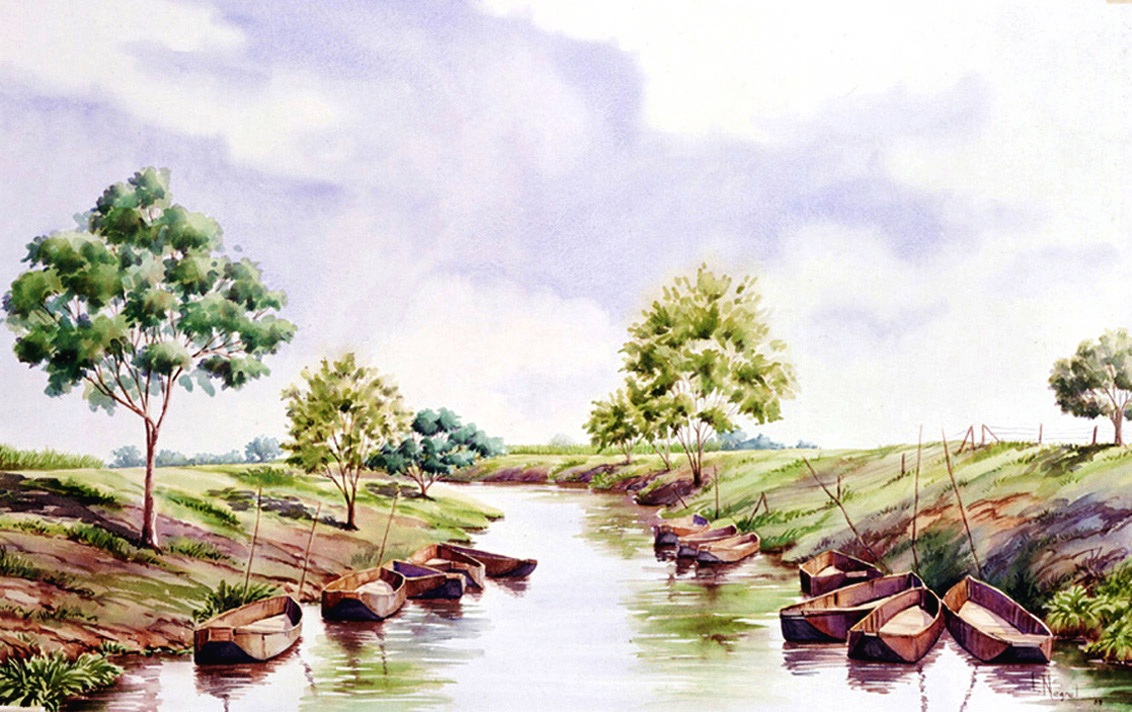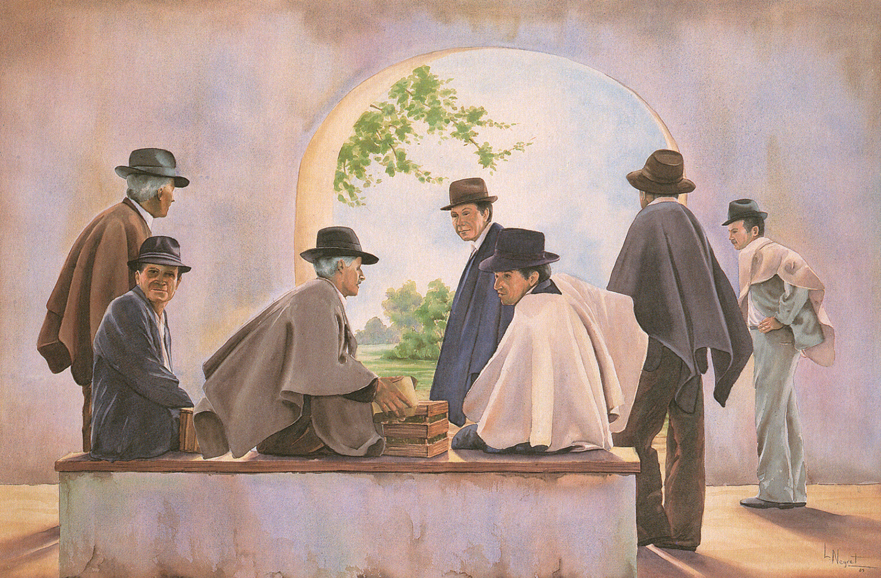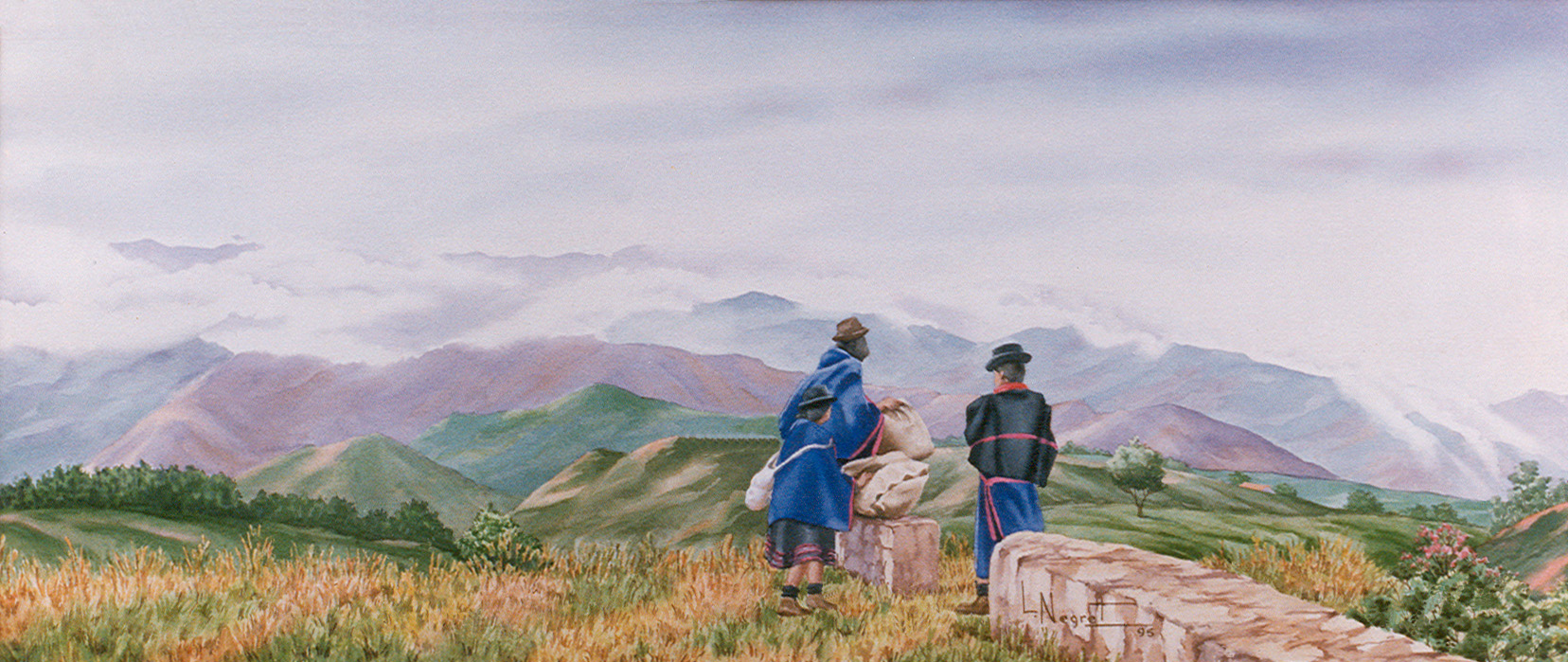 Con mis temas en acuarela paisajes y personajes de nuestra tierra colombiana trabajados en esta dificil técnica, podemos recordar a los antiguos maestros debido a mis métodos de trabajo.