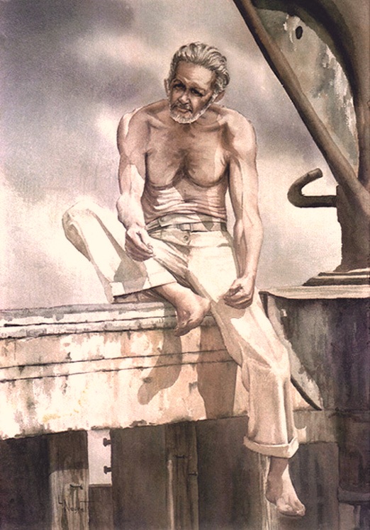 Siempre he querido demostrar que con acuarela se pueden hacer obras con mucho carácter y peso artistico.Con una buena composicion y estructura que son las características más importantes de mi trabajo, se pueden lograr obras que hasta ahora han sido reservadas para el óleo. Esto lo podemos apreciar por los grandes formatos de mis cuadros y por el manejo de mis figuras llenas de vida y de expresión
